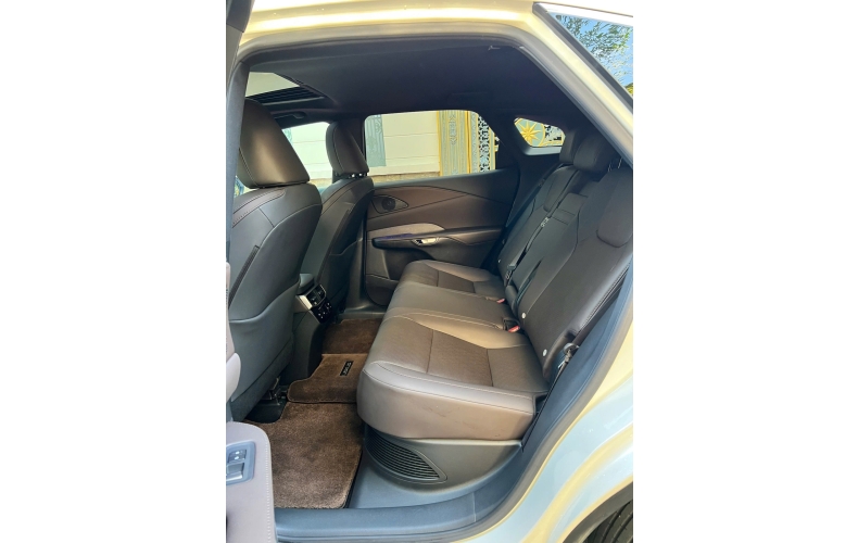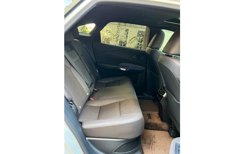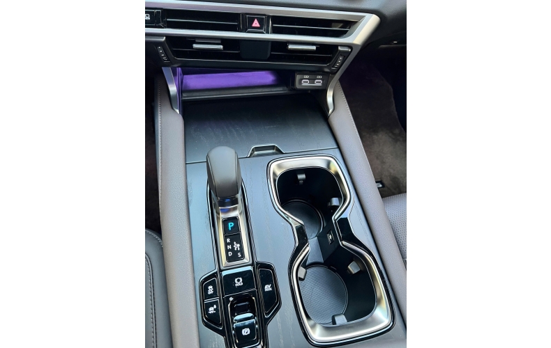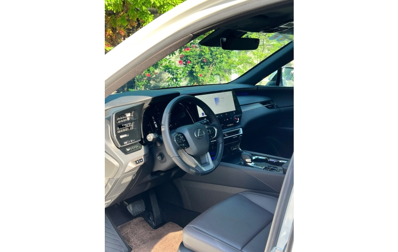 Phiên bản RX 350h không quá khác biệt so với mẫu tiêu chuẩn với trục cơ sở được kéo dài thêm 60 mm dù chiều dài tổng thể được giữ nguyên. Cabin phối 2 tông màu ấn tượng, bọc da ở các điểm chạm như bệ tỳ tay, táp-pi mang đến cảm giác sang trọng và dễ chịu.Thiết kế “bức tường cong” tích hợp cụm đồng hồ kỹ thuật số và màn hình trung tâm kích thước 14 inch rõ ràng là dấu ấn thẩm mỹ nổi bật nhất ở khoang lái. Xe vẫn sử dụng kiểu vô lăng 3 chấu thể thao tích hợp lẫy chuyển số và nút bấm điều khiển quen thuộc. Bên cạnh các màn hình, Lexus cũng bố trí hàm lượng vừa đủ các nút bấm điều khiển để không làm rối tổng thể tối giản nhưng cũng đủ hỗ trợ người dùng vượt qua những bất tiện và mất tập trung lái nếu phải dùng đến bảng cảm ứng. Băng ghế sau cũng được lắp cửa gió riêng kèm cổng sạc và bệ tỳ tay có thể mở ra từ vị trí trung tâm.