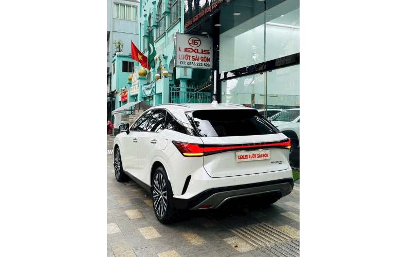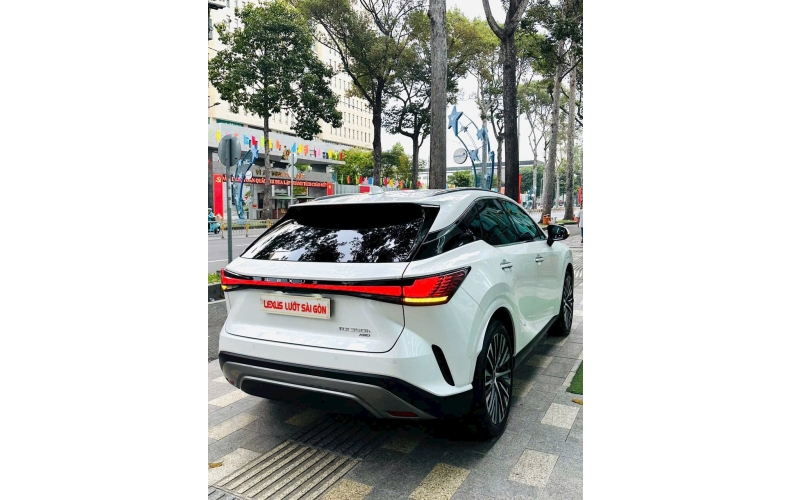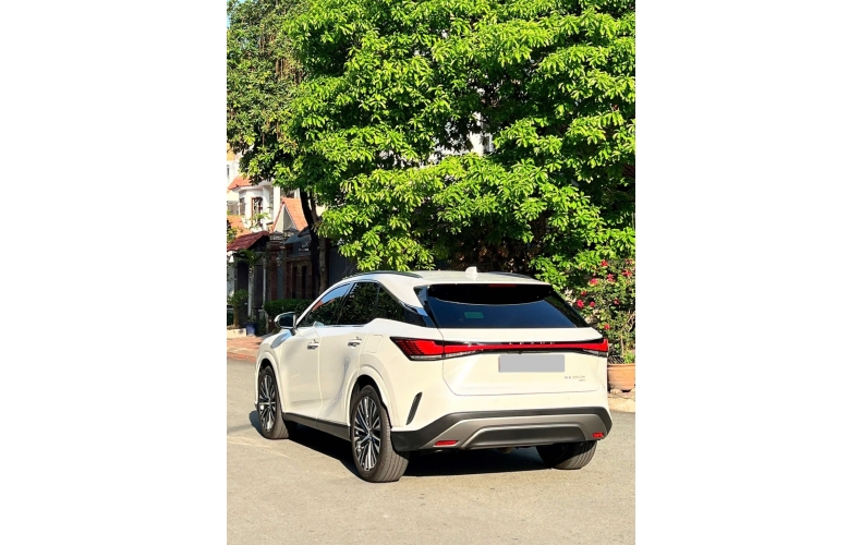 Đuôi xe Lexus RX 350h 2025 thu hút mọi ánh nhìn với cụm đèn hậu LED tạo hình một “dải lụa” liền mạch, vắt ngang xe, ở trung tâm tôn vinh thương hiệu với dòng chữ “LEXUS”. Phía trên là cánh lướt gió tích hợp ăng-ten vây cá thời trang.